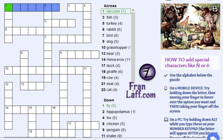 practice the names of many different animals in Spanish with this FREE online interactive puzzle