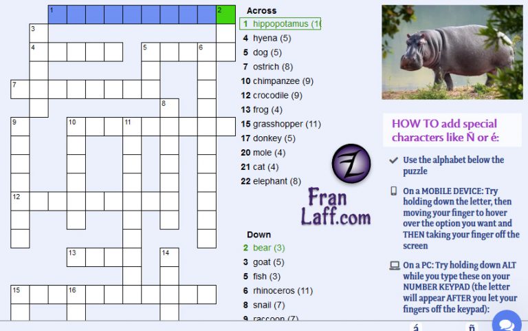 practice Spanish animal vocabulary with this free online crossword puzzle
