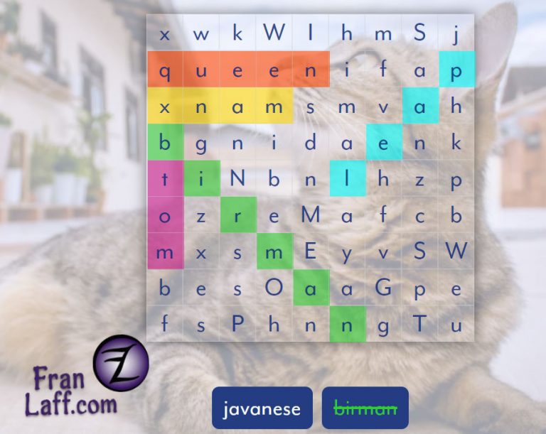search for names of cat breeds and other words related to cats