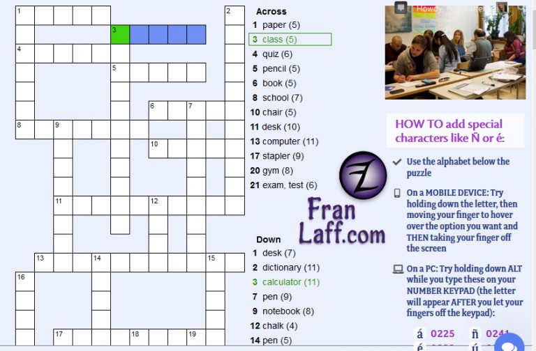 practice Spanish vocabulary terms for items in the school and classroom with this FREE online interactive puzzle