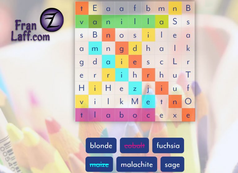 search for common and lesser-known color names in this FREE online wordsearch puzzle