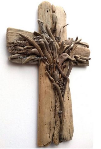 Unique driftwood cross handmade in England and for sale on Etsy