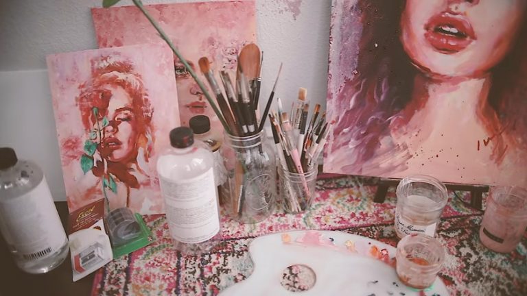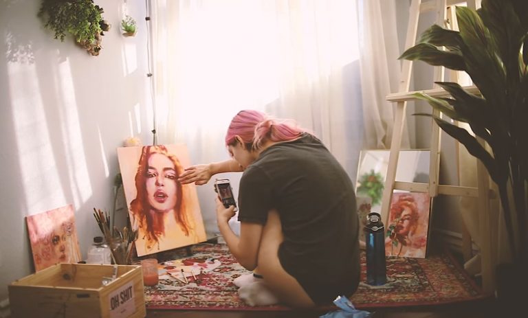 This very brief video tour of a painter named Jimena's space is followed by a narrated speed painting with oils on primed wood panel