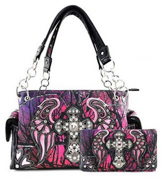 purses, wallets, and messenger bags in a few different colors and styles, available on Amazon