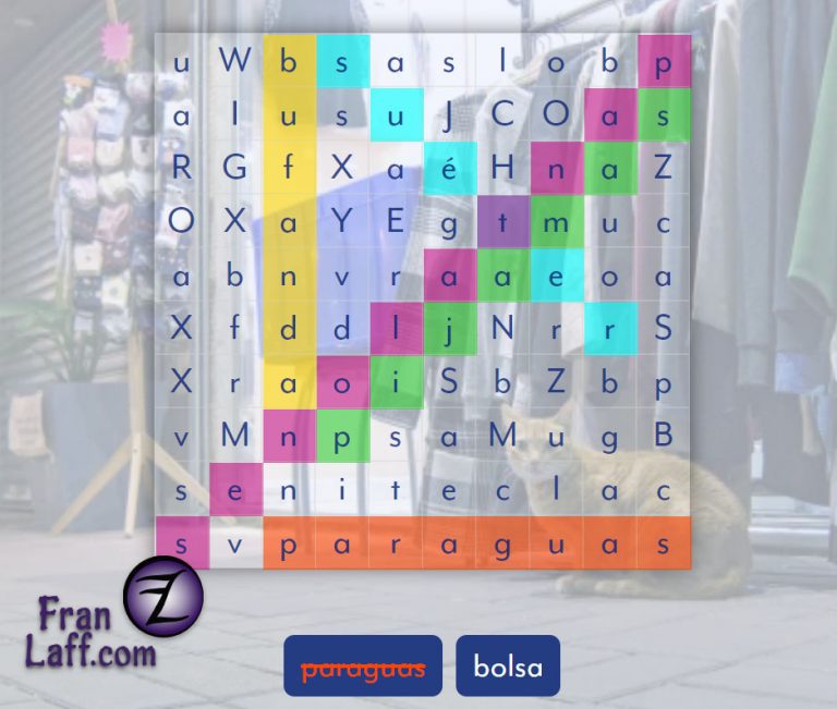 search for Spanish names of clothing and accessory items in this FREE interactive wordsearch puzzle