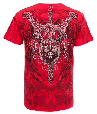 crosses and shields adorn this t-shirt available also on white or red background, on Amazon