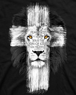 black shirt with the Lion of Judah and a superimposed cross -- available for about $15 on Amazon