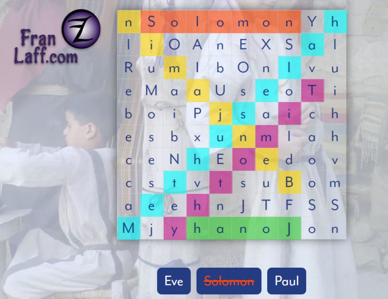 search for the names of people who play significant roles in the Bible in this FREE online wordsearch puzzle