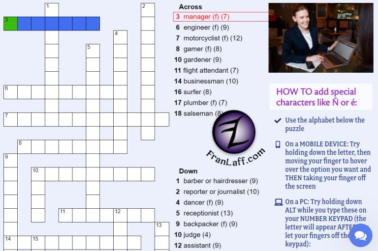 Practice Spanish words for various occupations and jobs with this FREE online crossword puzzle!