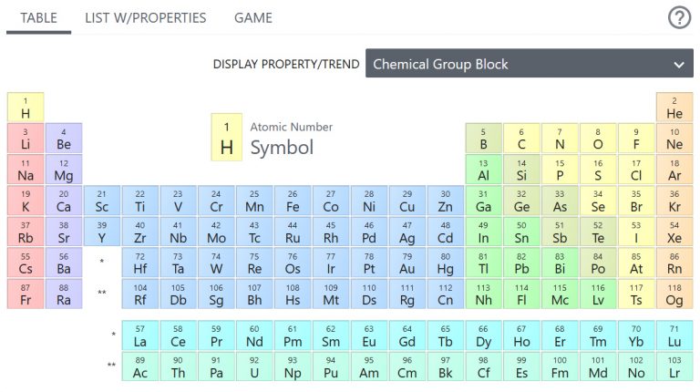 downloadable, printable periodic tables by topic, from the National Library of Medicine