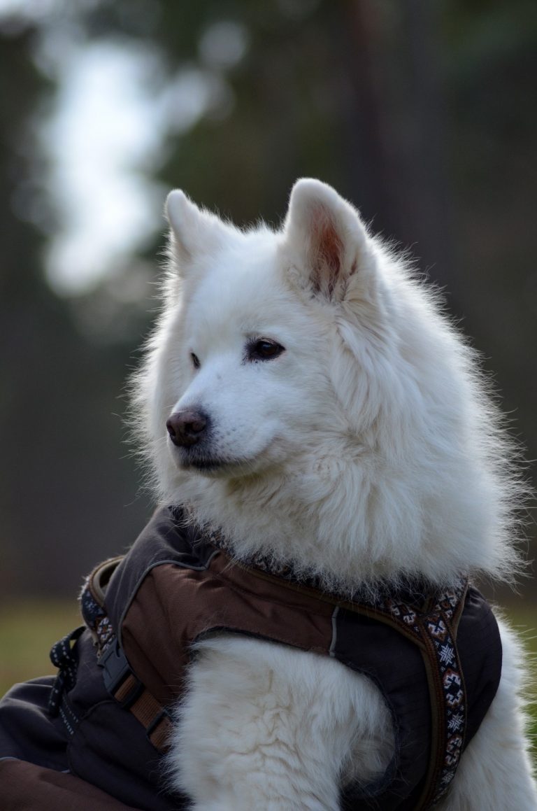 This fluffy all-white northern breed was developed for herding reindeer in Siberia