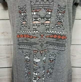 size large grey v-neck t-shirt featuring a very unique southwestern or zentangle-style cross, for sale on Poshmark for $15 USD