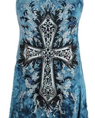 cross tunic for women on either indigo or bright blue background -- available on Amazon