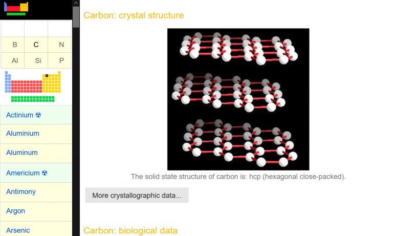 interactive periodic table, with individual element pages showing more details than most -- crystalline structure, other properties