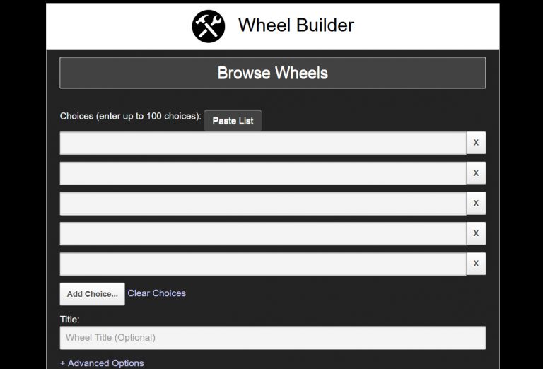 make your own wheels to choose an option at random -- or use one of the pre-made wheels