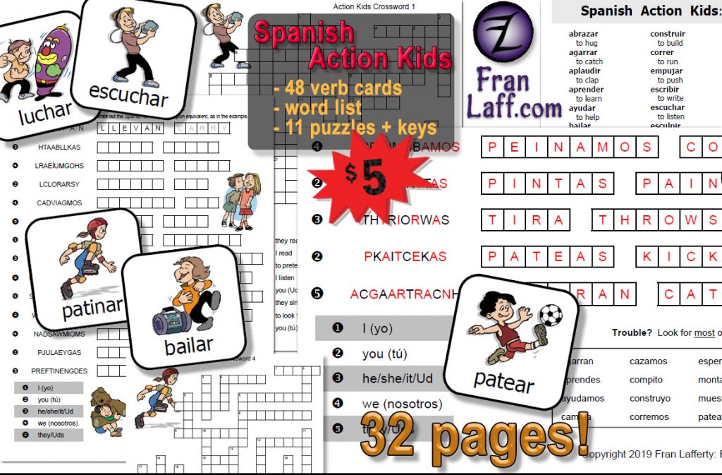 Practice 48 Spanish action verbs with this set of cards and puzzle worksheets!