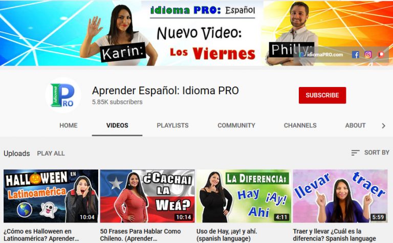 Aprender Español: Idioma PRO YouTube channel teaching many topics in Spanish, along with podcasts and videos for enhancing listening skills