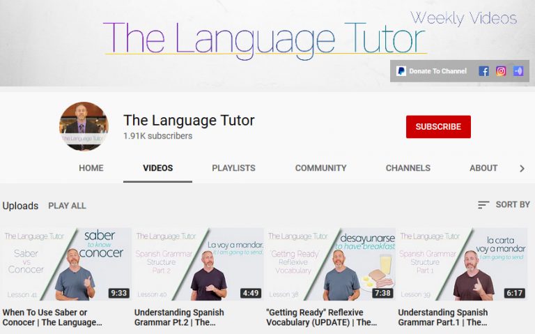 The (Spanish) Language Tutor YouTube channel featuring Spanish tutorial videos for middle and upper grades, even adult learners