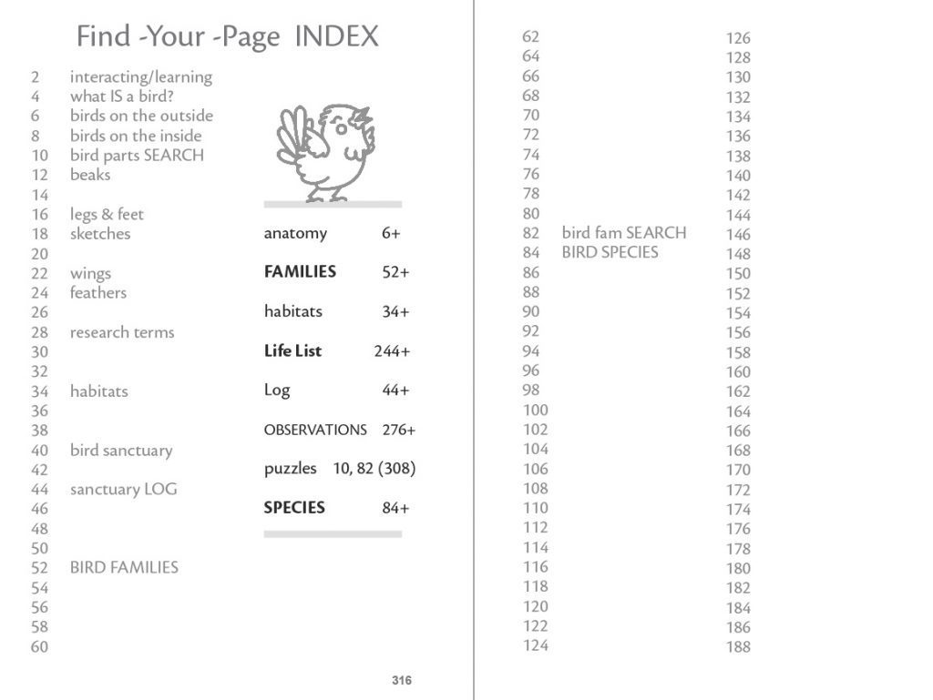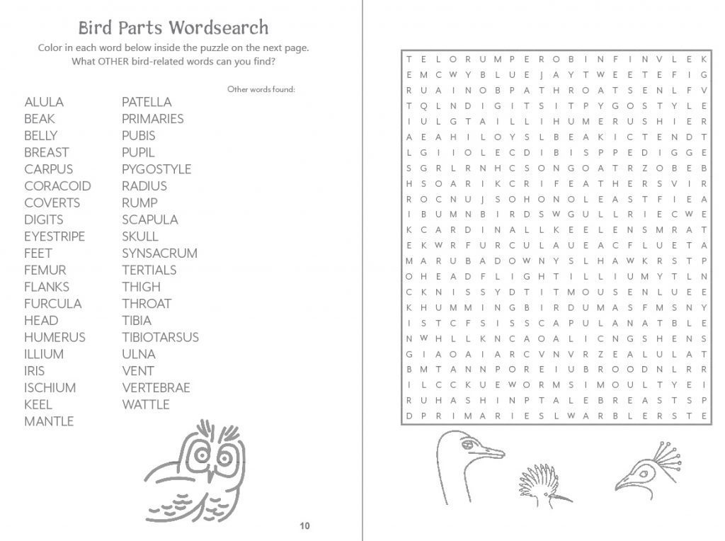 Two wordsearch puzzles with answer keys and a specialized index round out the over 300 pages in this book that is sure to find its place right next to your favorite bird field guide and pair of binoculars.Â