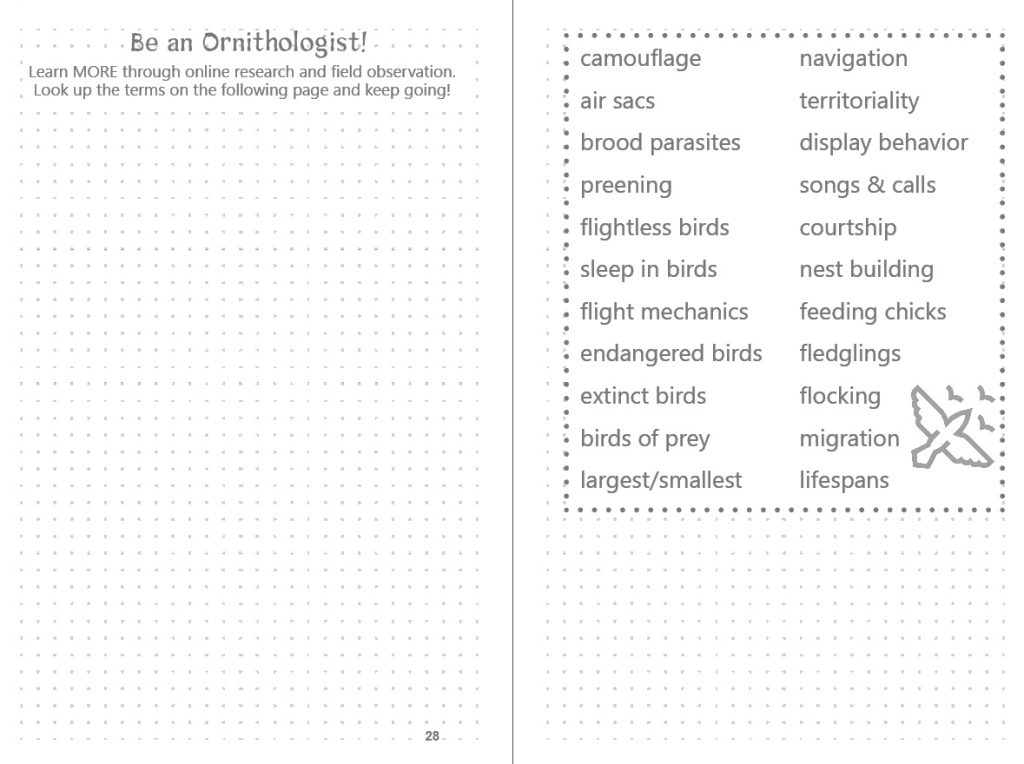The Jo Bird Learning Journal guides bird watchers of all skill levels into a study of bird anatomy, behavior, and classification.Â