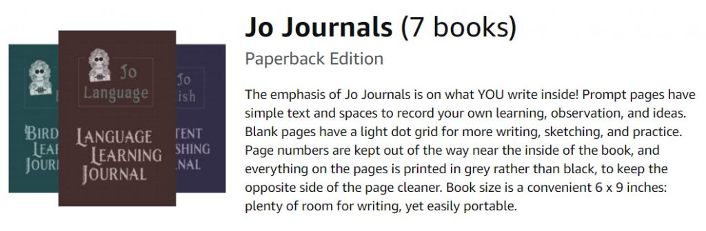 Jo Content Publishing Journal will help you keep track of ideas and research, works in progress, finished publications, and even promotions and marketing campaigns. This 270-page notebook features charts and pages to keep track of 360 publications, 286 promotional sets, 150 royalties and rewards, 80 detailed projects, 56 goals broken down into 3 to 5 tasks each, and up to 14 published series. There are even a dozen illustrated pages to jot down your ideas for new projects and topics to research.