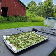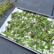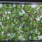 After I finish gathering Prunella, I remove the softer parts from the toughest main stems, and set them out to dry for several days. You CAN use the main stems, but I remove them simply because I have plenty dried herb without them.