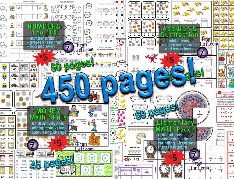 Get all 7 printable math packets in ONE 450 page file!