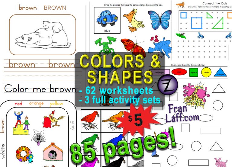 This 85-page mega packet makes learning shapes and colors FUN, with games, activities and worksheets.
