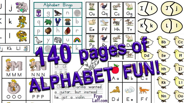 Practice letter recognition, upper- and lower-case match, alphabet order, and beginning letter sounds with this 140-page printable MEGA packet of English alphabet FUN!