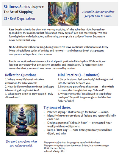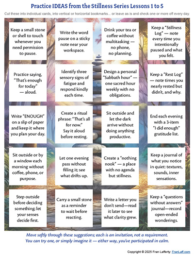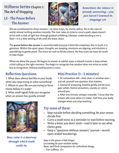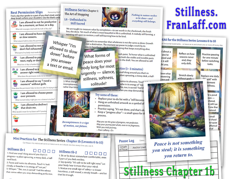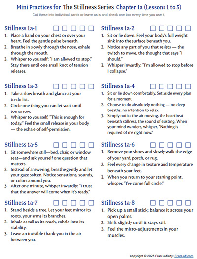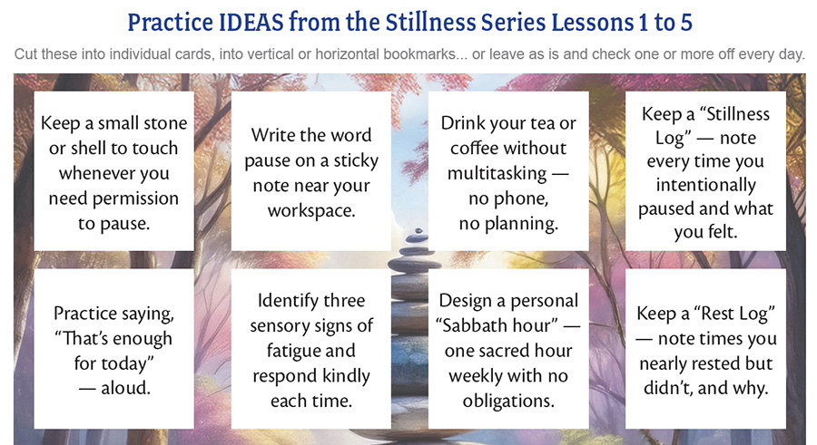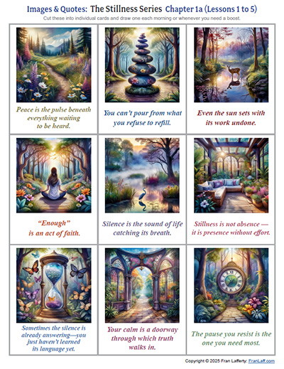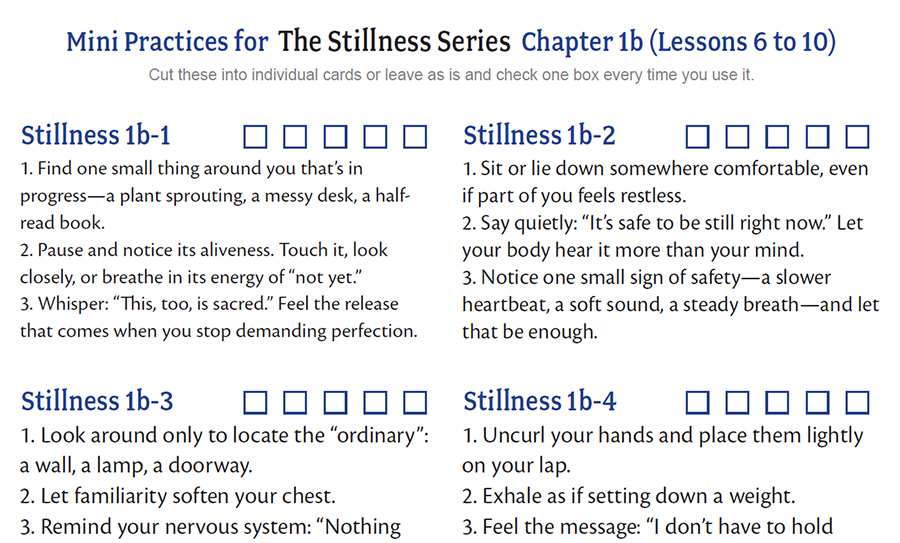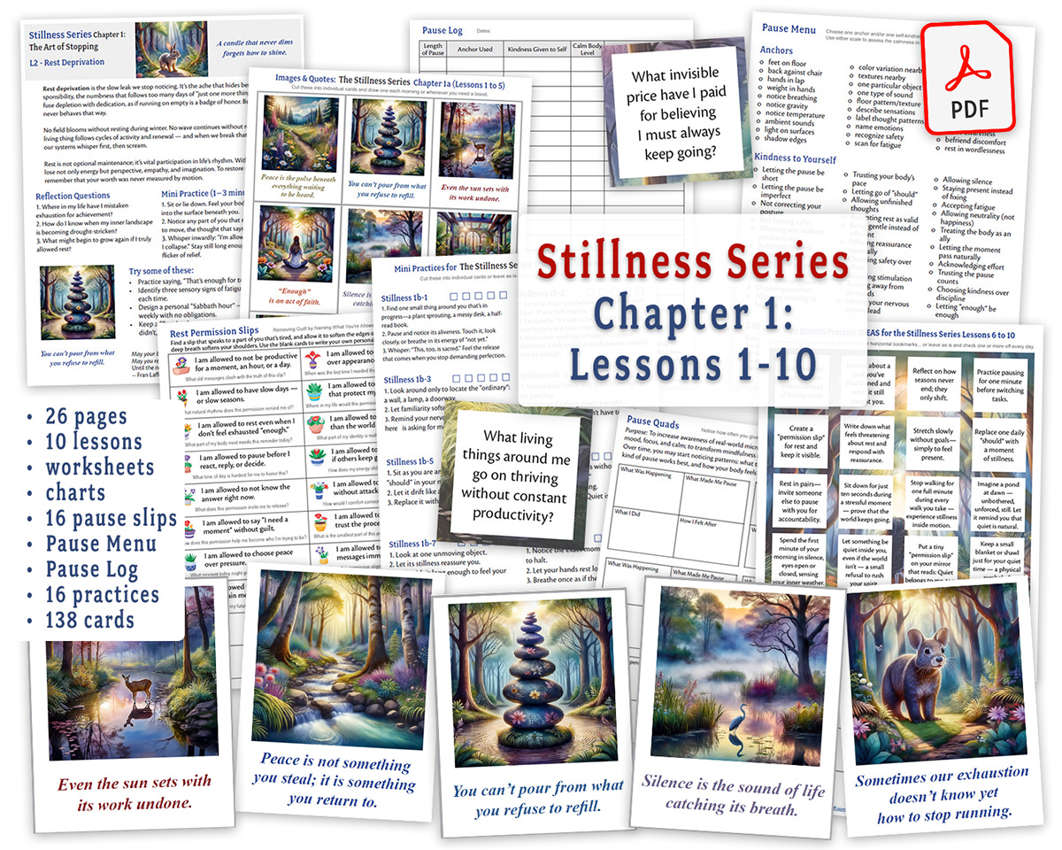 Look for additional Stillness Series chapters and materials becoming available throughout 2026: seven more chapters with more logs, cards, reflections, and companion practices—each offered separately or bundled into chapter sets such as this one.