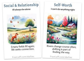 Nature-based cognitive reframes based on scientifically proven CBT (cognitive behavioral therapy) PLUS the wisdom of the natural world – digital and printable cards, interactives and journals – a growing collection of resources!