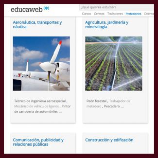 for older students, detailed descriptions of careers by subject area, all in Spanish
