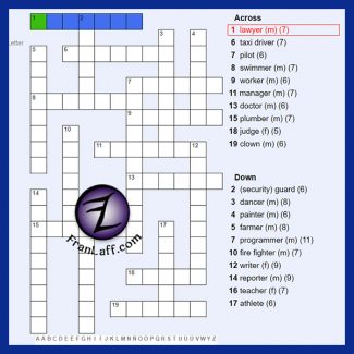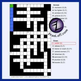 ProfXwd1-1 practice 20 different professions and jobs in Spanish with this FREE online crossword puzzle