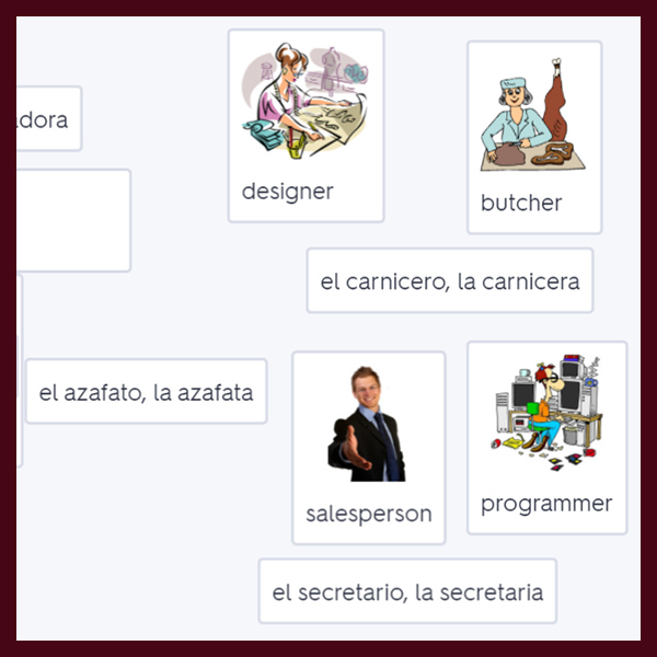 over 200 stickers for learning Spanish occupations