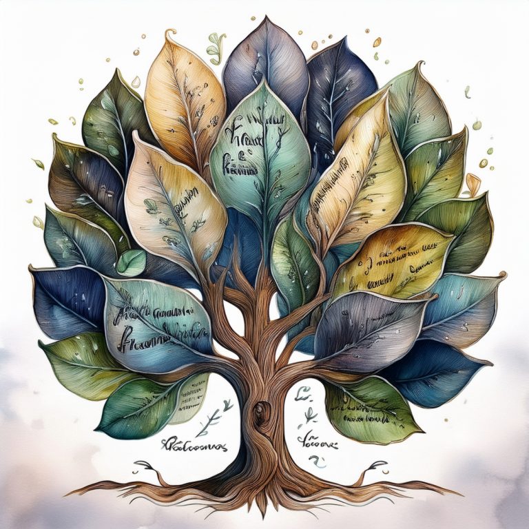 Write or collage identity words onto petals or leaves and place them on branches.