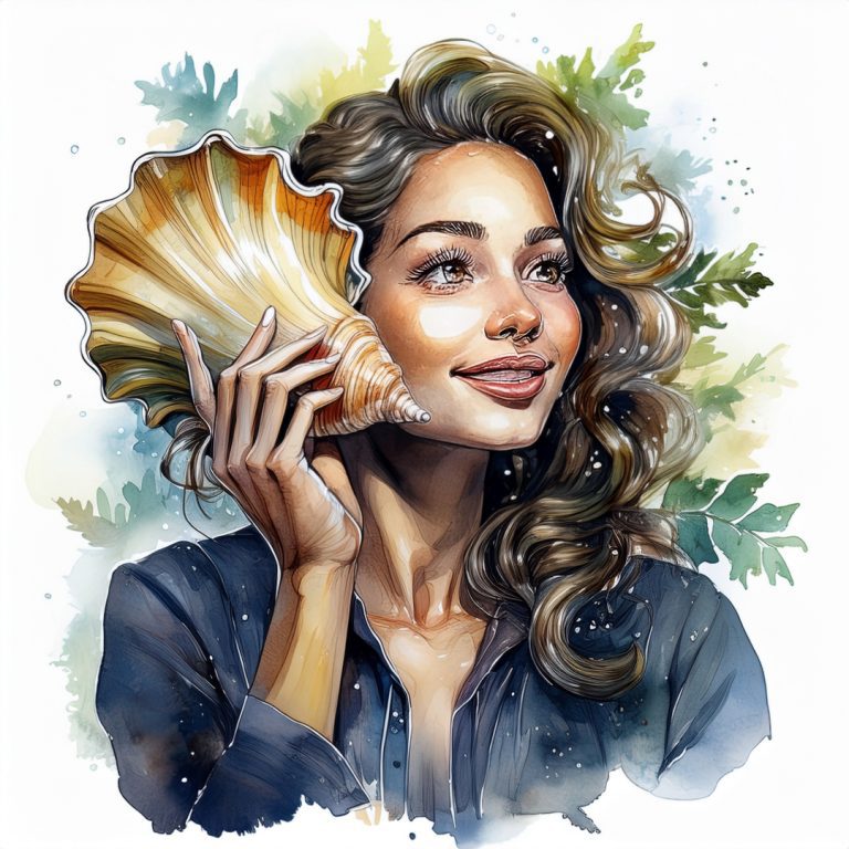 Sketch a shoreline littered with symbolic shells. Each one holds a past name.