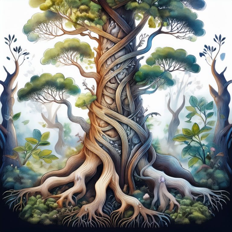 Use linework to create internal structure—bones, roots, frame—beneath a landscape.