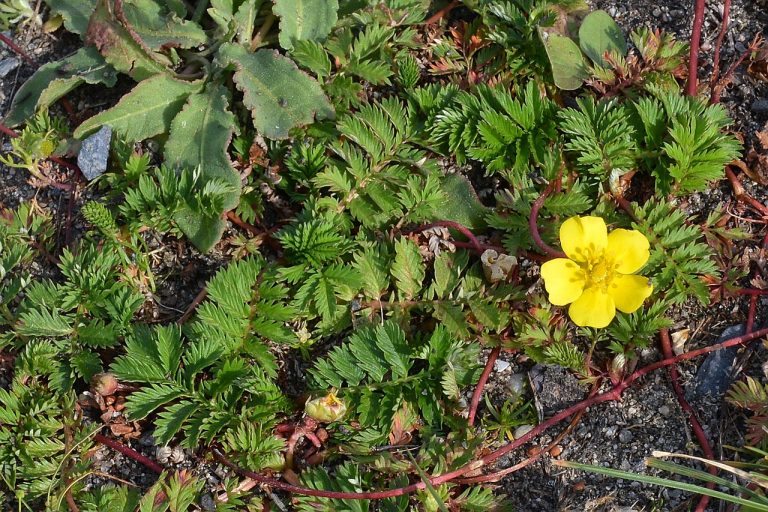 This yellow-flowered, silvery-leaved plant grows low to the ground and has runners that shoot out all over to establish new plants, just like its ...
