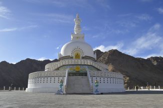 Shanti Stupa This bright white domed building sits high in the Himalayan mountain region in northern India