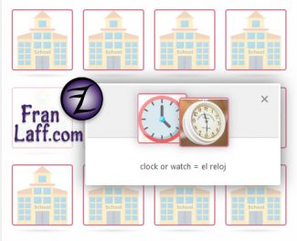 Memory de la Escuela match icons and photos of items commonly found in the school or classroom, and learn their Spanish equivalents