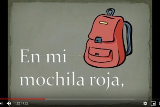 En mi mochila roja fun video using a simple, repetitive song to teach Spanish classroom objects found inside a backpack
