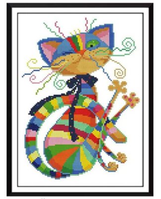 unique cross stitch kit on 11ct cloth -- great for beginners and cat lovers!