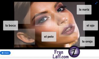 El Cuerpo Drag 1 review a few Spanish body terms by dragging them to the places on the photo and clicking "Check"