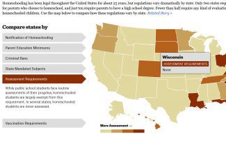 Homeschool Regulations MAP Compare homeschool regulations between US states at a glance with this map created by Pro-Publica