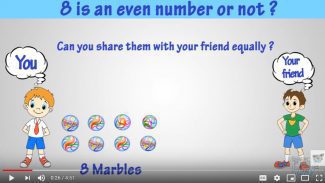 What are Odd and Even Numbers? A cartoon video teaching odd and even numbers by dividing equally into 2 parts or not.