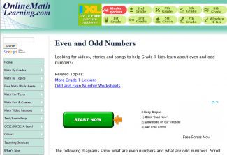 Online Math: Even and Odd Videos and text explanations of even and odd numbers, plus words to the songs used in the videos